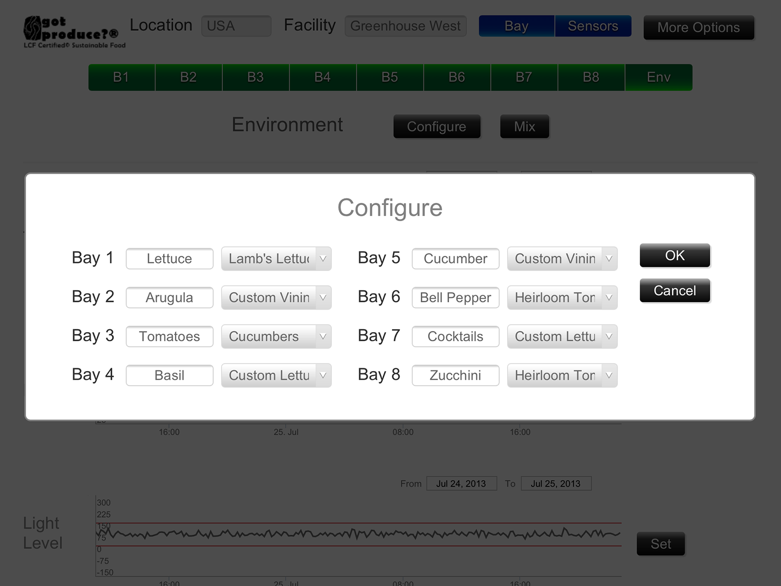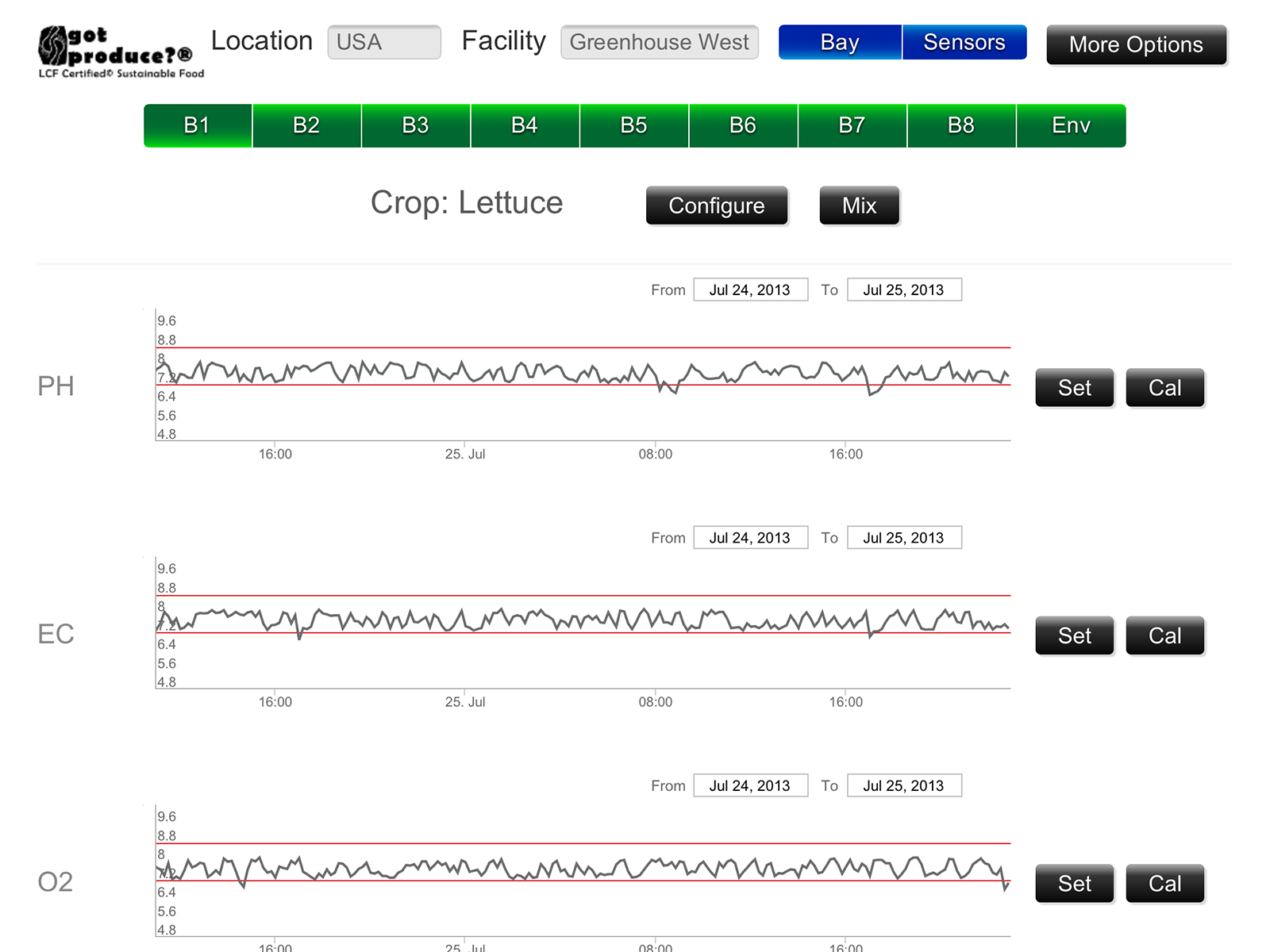 Precise calculations and growing recipes are created in Got Produce patented technology. Simply select a crop and its automatically programmed with specific growing conditions for water quality, external temperatures, internal crop varieties and hydroponic pond temperatures.